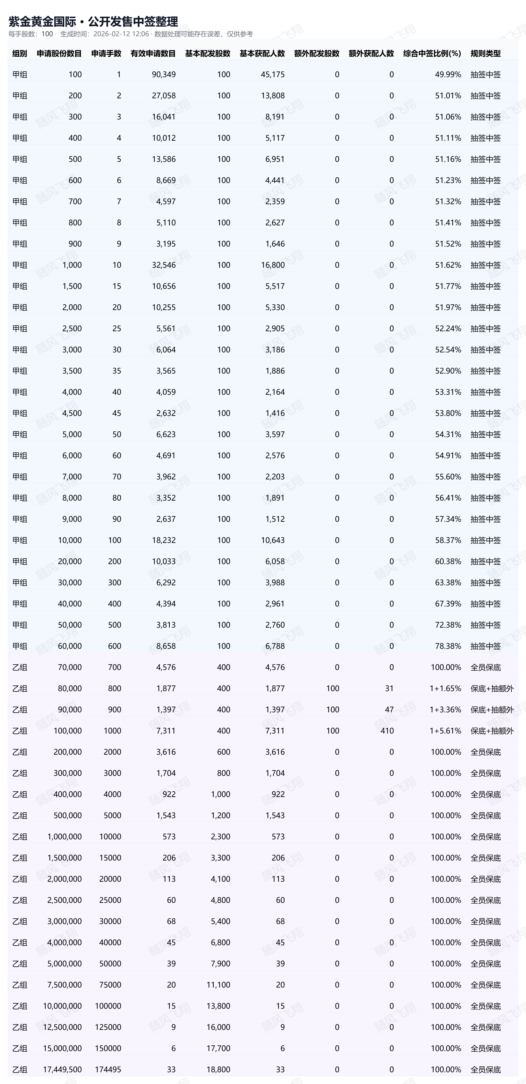 基于上市公司在交易所发布的配售公告中公布的各档位的中签情况,并通过人工智能统计计算分析,可能存在误差,仅供参考。