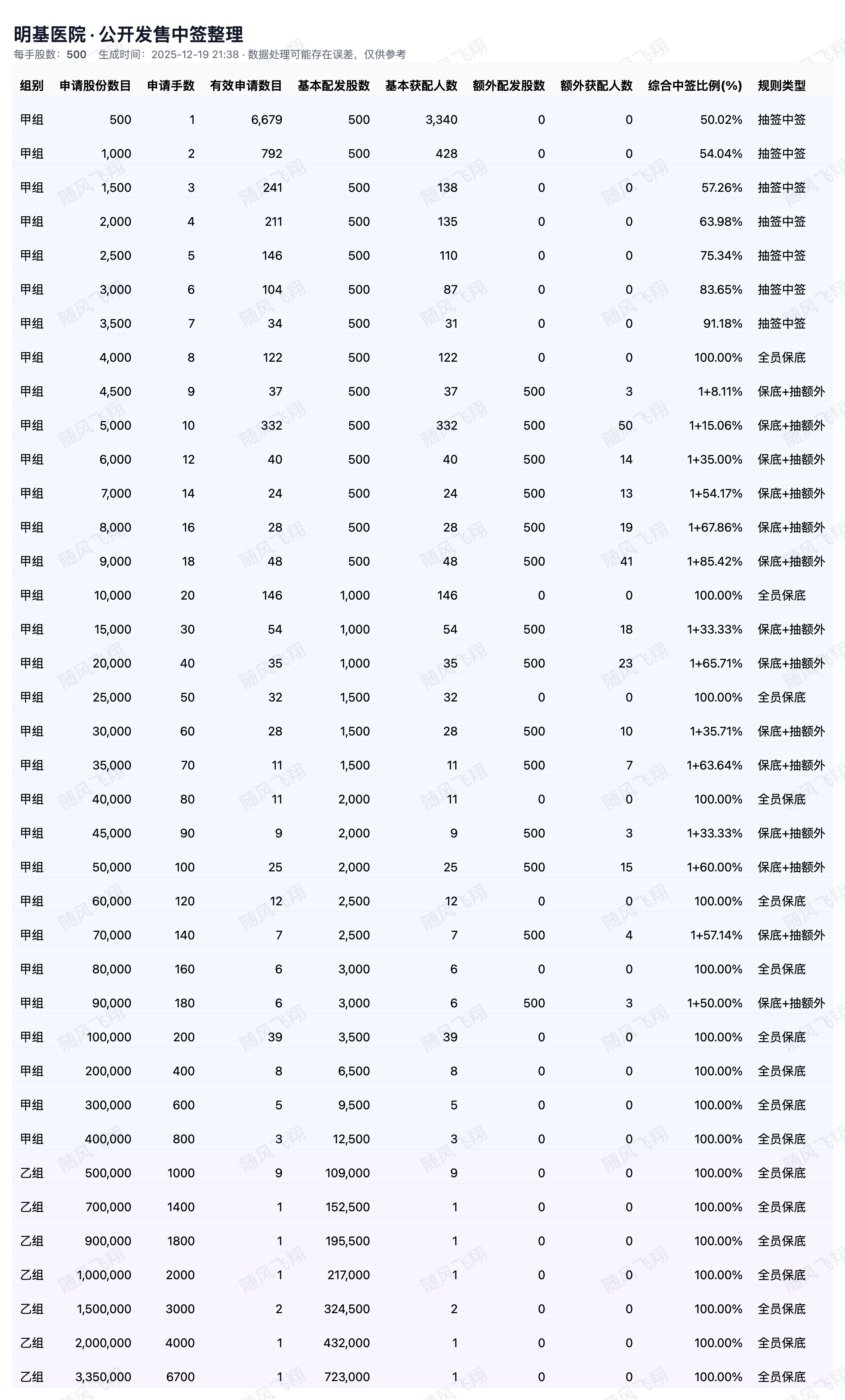 基于上市公司在交易所发布的配售公告中公布的各档位的中签情况,并通过人工智能统计计算分析,可能存在误差,仅供参考。