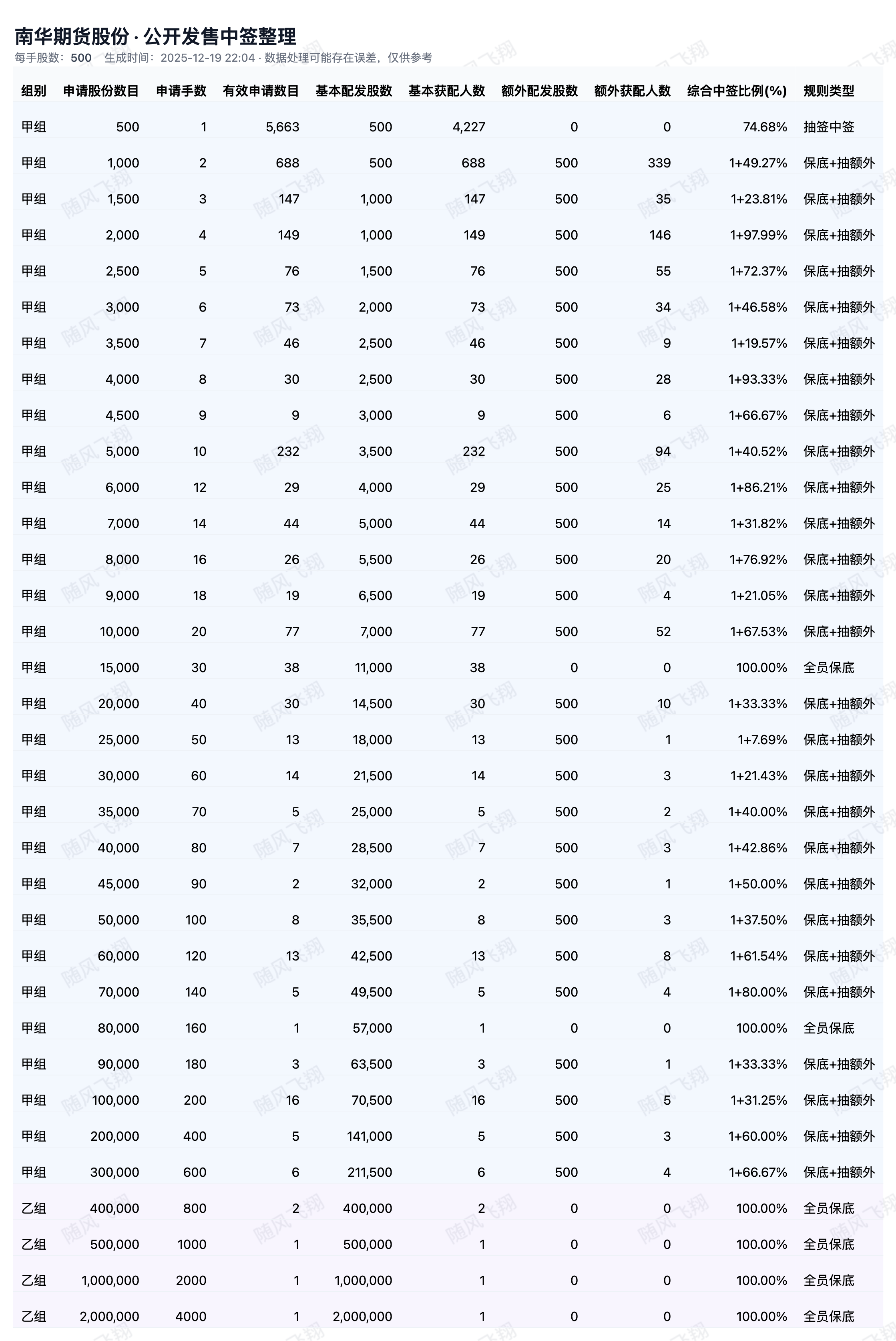 基于上市公司在交易所发布的配售公告中公布的各档位的中签情况,并通过人工智能统计计算分析,可能存在误差,仅供参考。