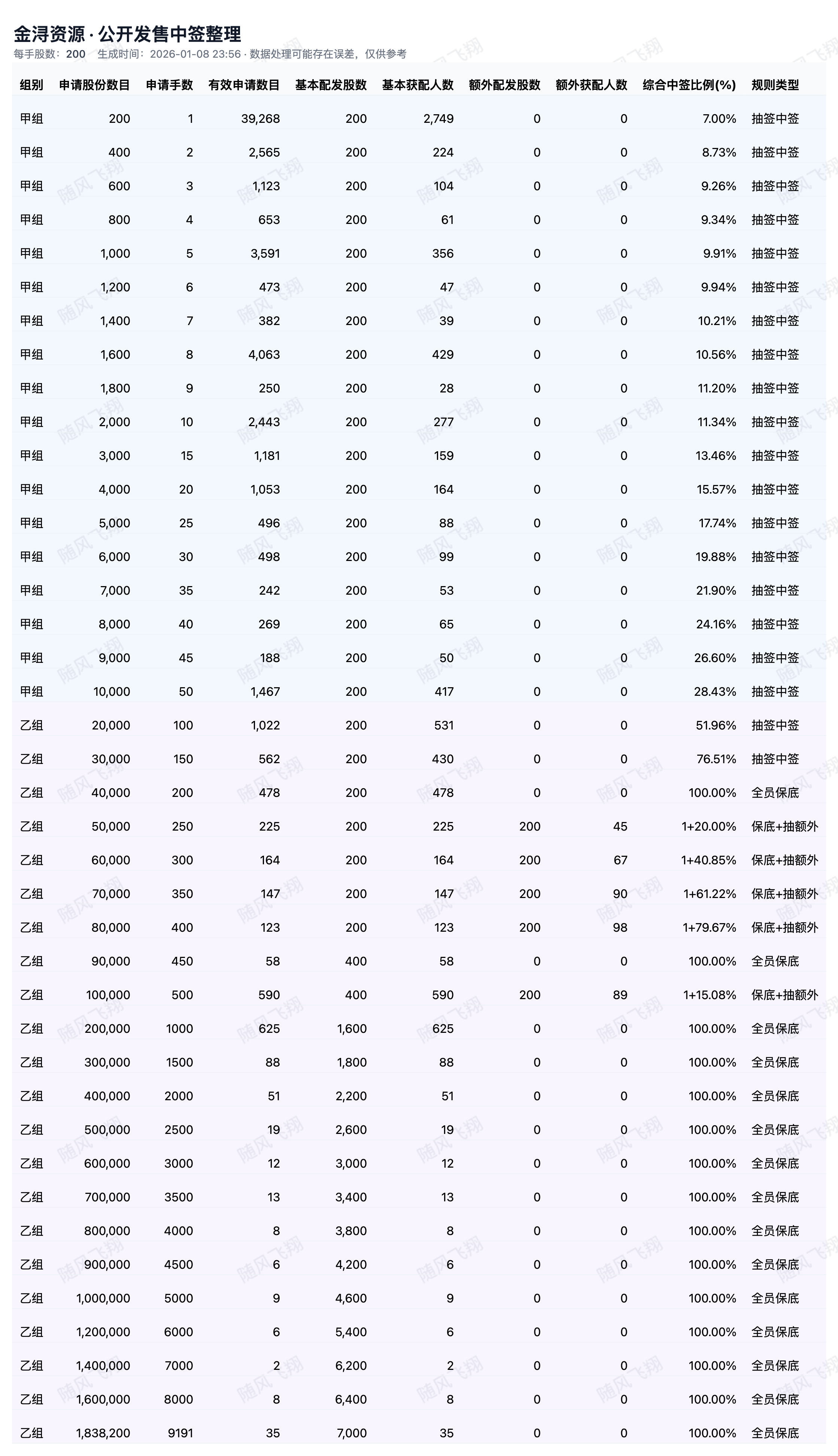 基于上市公司在交易所发布的配售公告中公布的各档位的中签情况,并通过人工智能统计计算分析,可能存在误差,仅供参考。