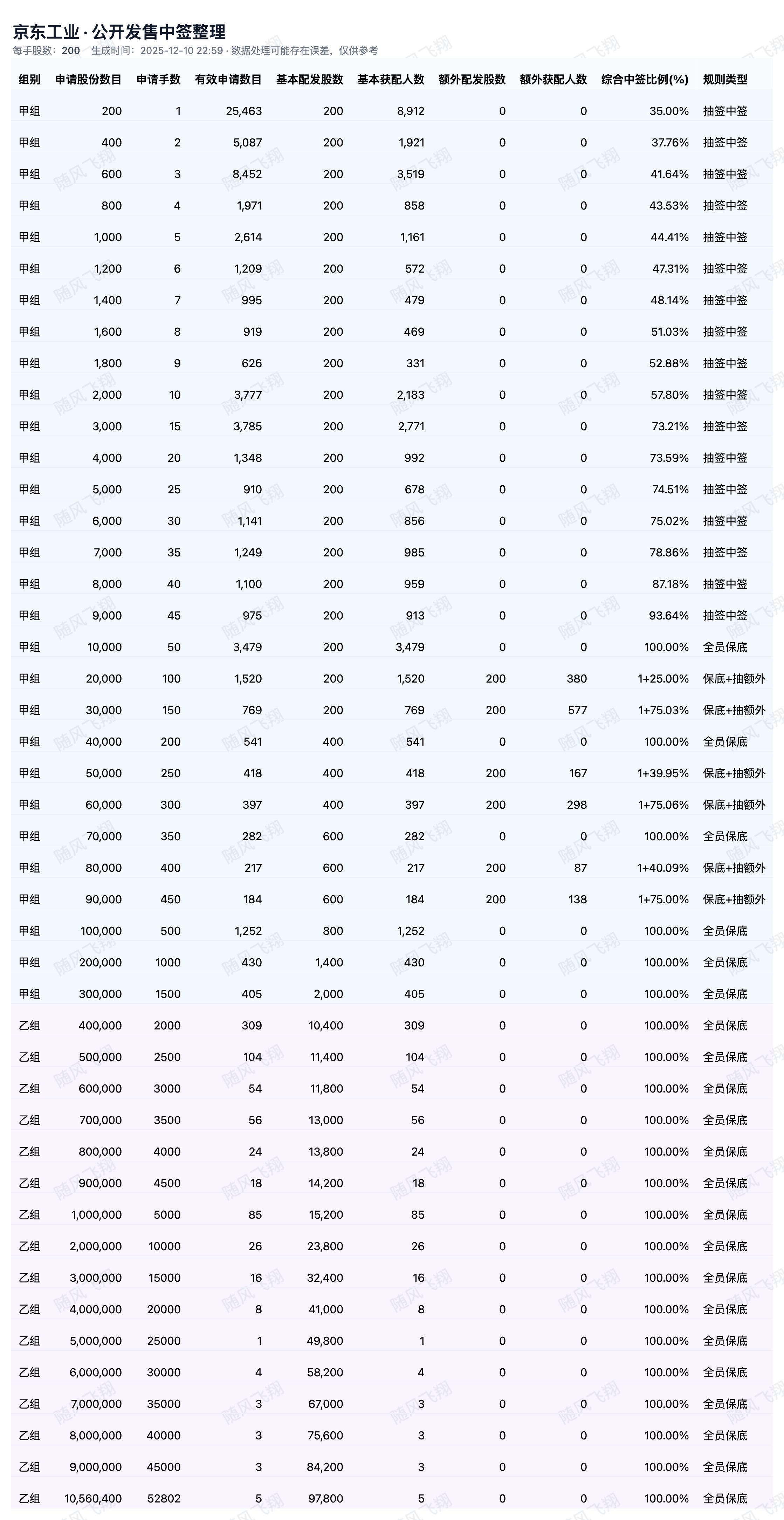 基于上市公司在交易所发布的配售公告中公布的各档位的中签情况,并通过人工智能统计计算分析,可能存在误差,仅供参考。