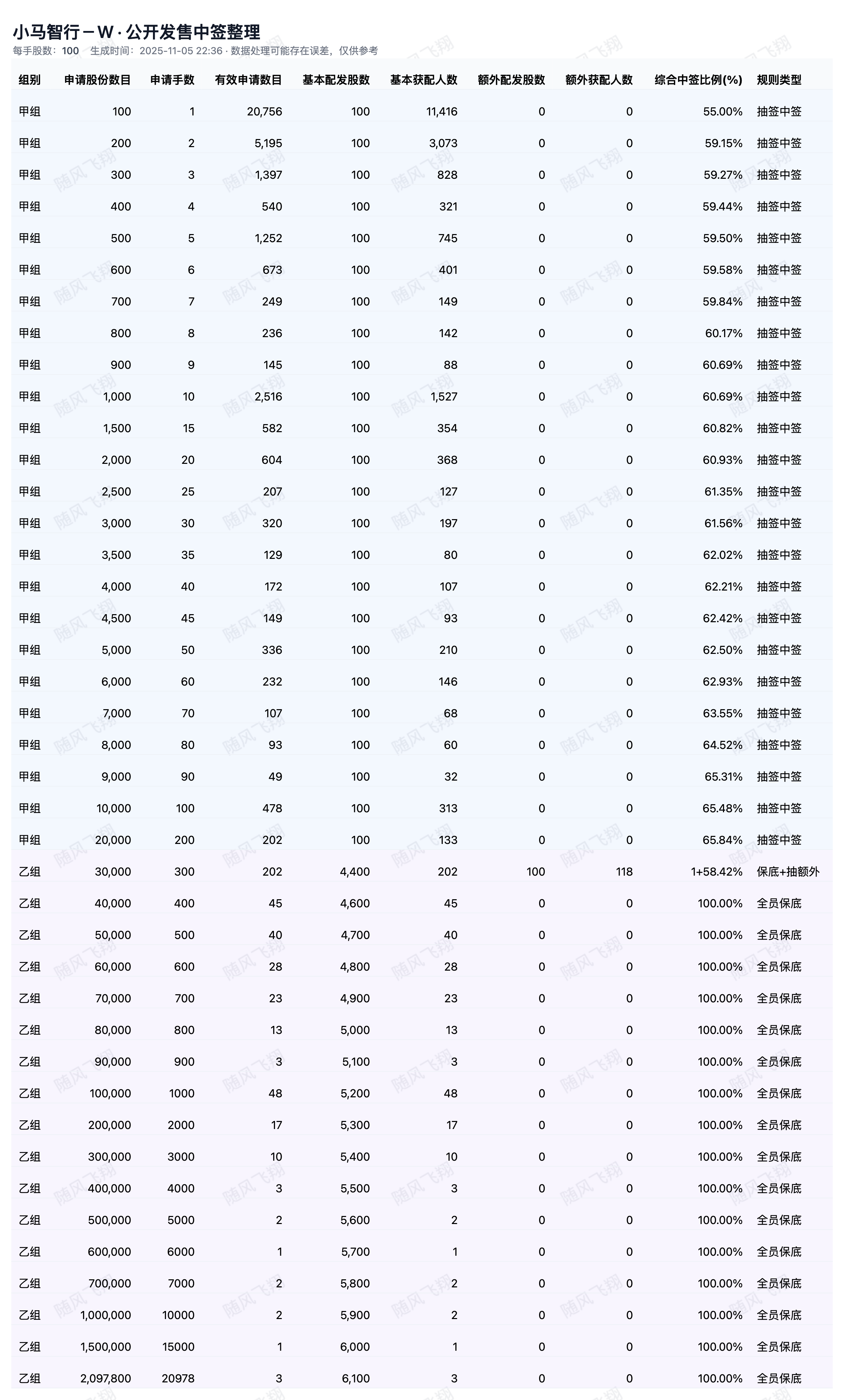 基于上市公司在交易所发布的配售公告中公布的各档位的中签情况,并通过人工智能统计计算分析,可能存在误差,仅供参考。
