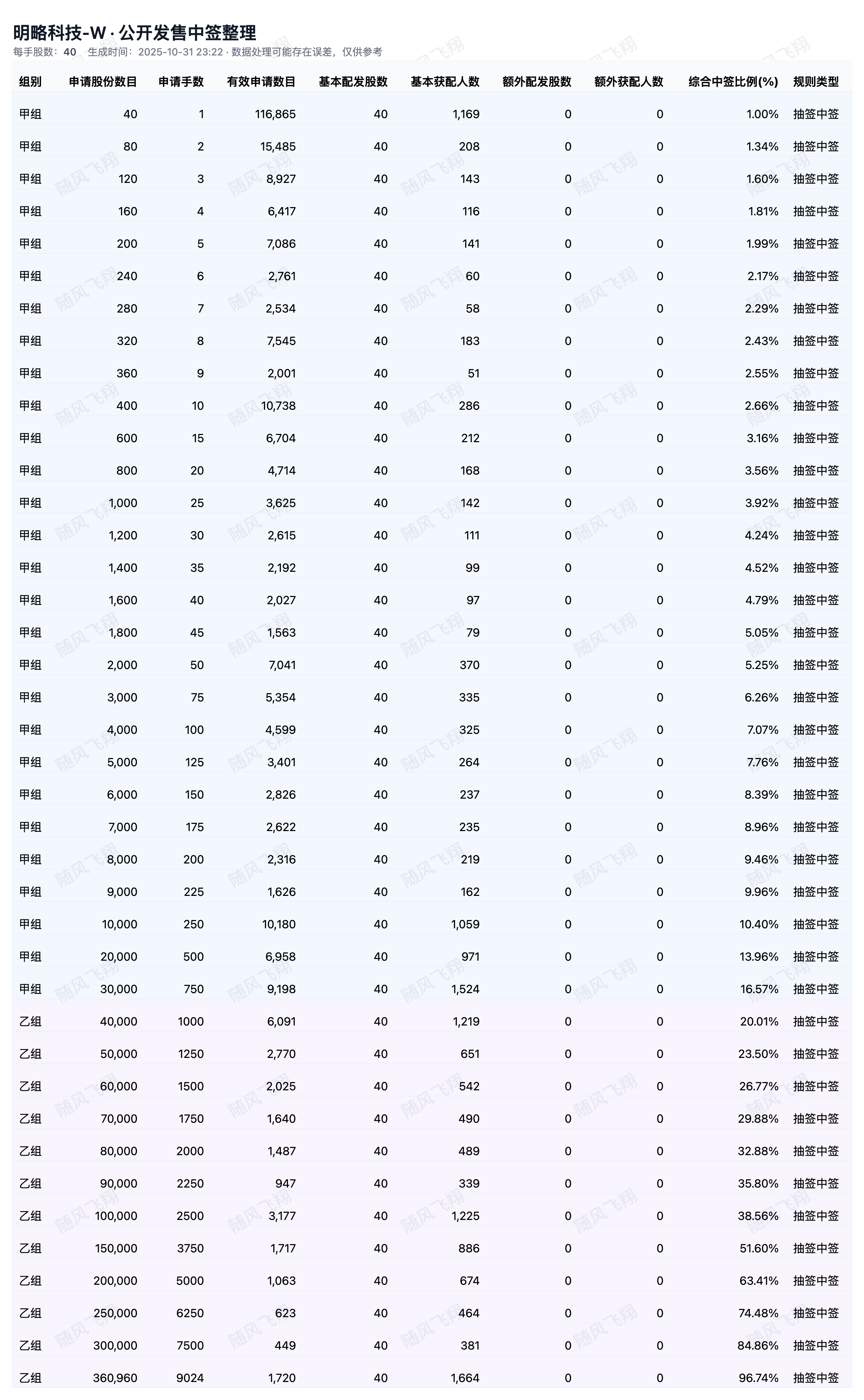 基于上市公司在交易所发布的配售公告中公布的各档位的中签情况,并通过人工智能统计计算分析,可能存在误差,仅供参考。