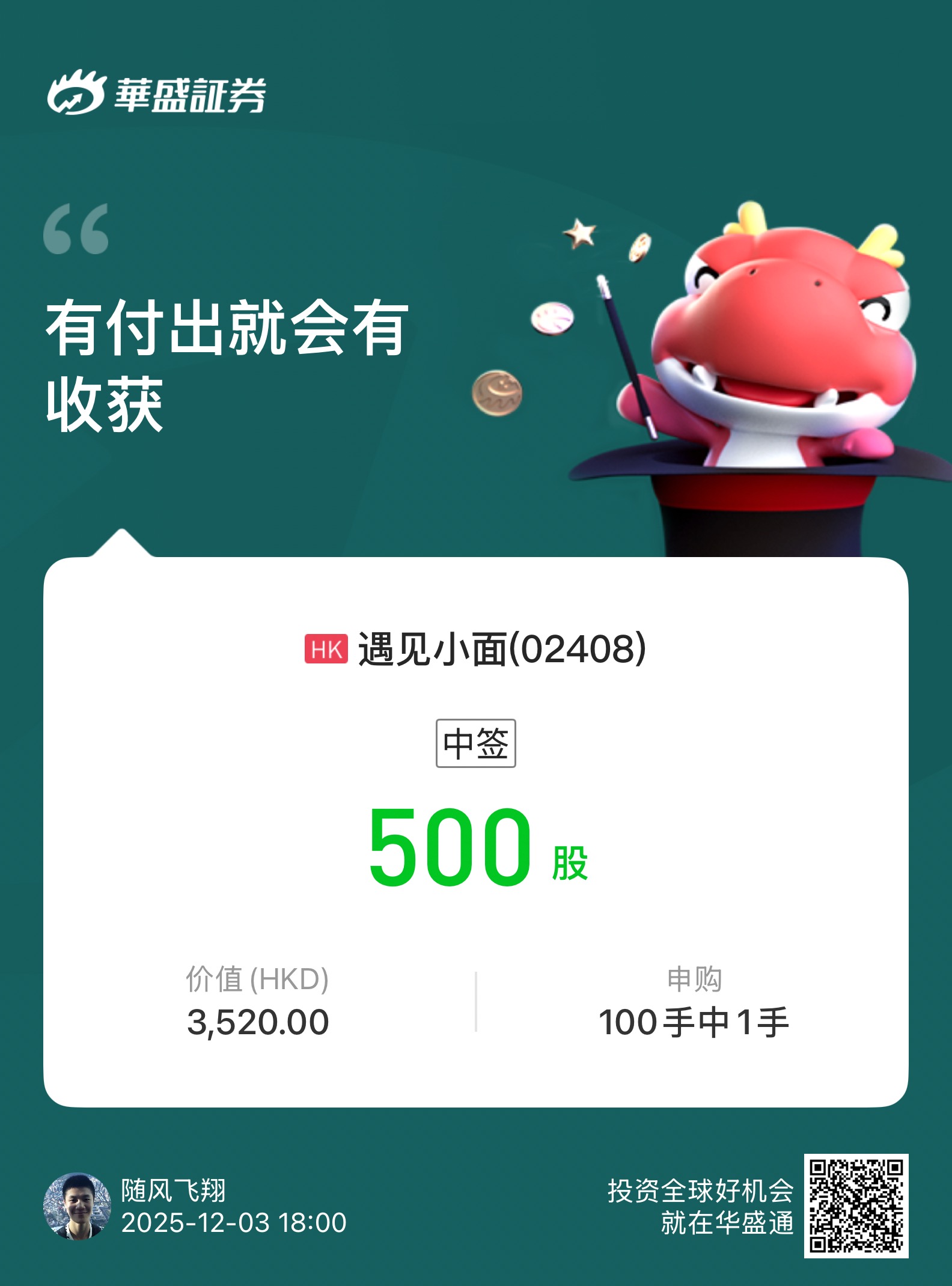 新股中签。