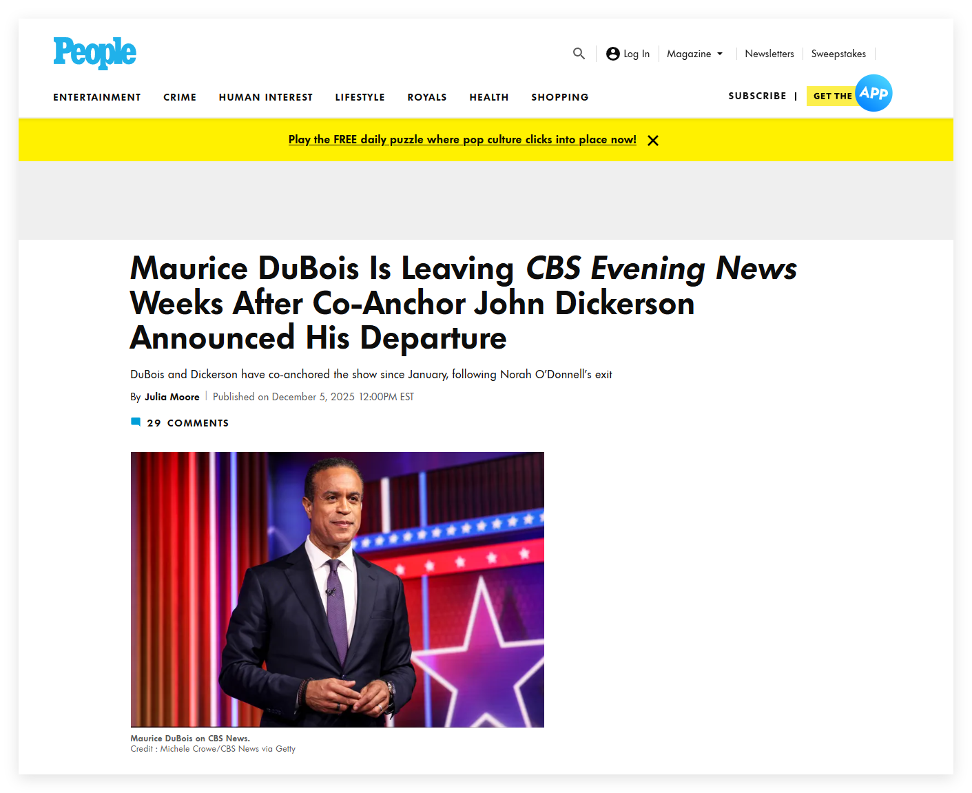 2025年12月18日晚间的CBS Evening News节目中,双主播宣布这是他们俩人的最后一集节目,并且俩人都宣布自己将离开CBS NEWS。
