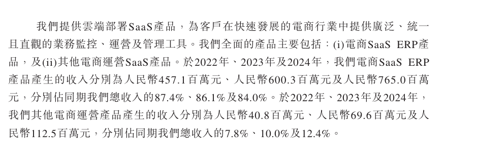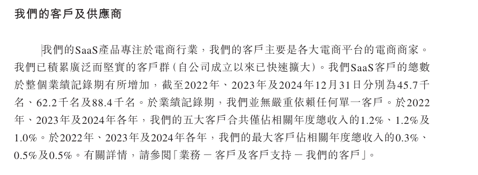 核心的聚水潭ERP本身其实看起来没有太多的想象空间,根据招股书来看核心的ERP系统的客户量截止到2024年年底是8.84万名。