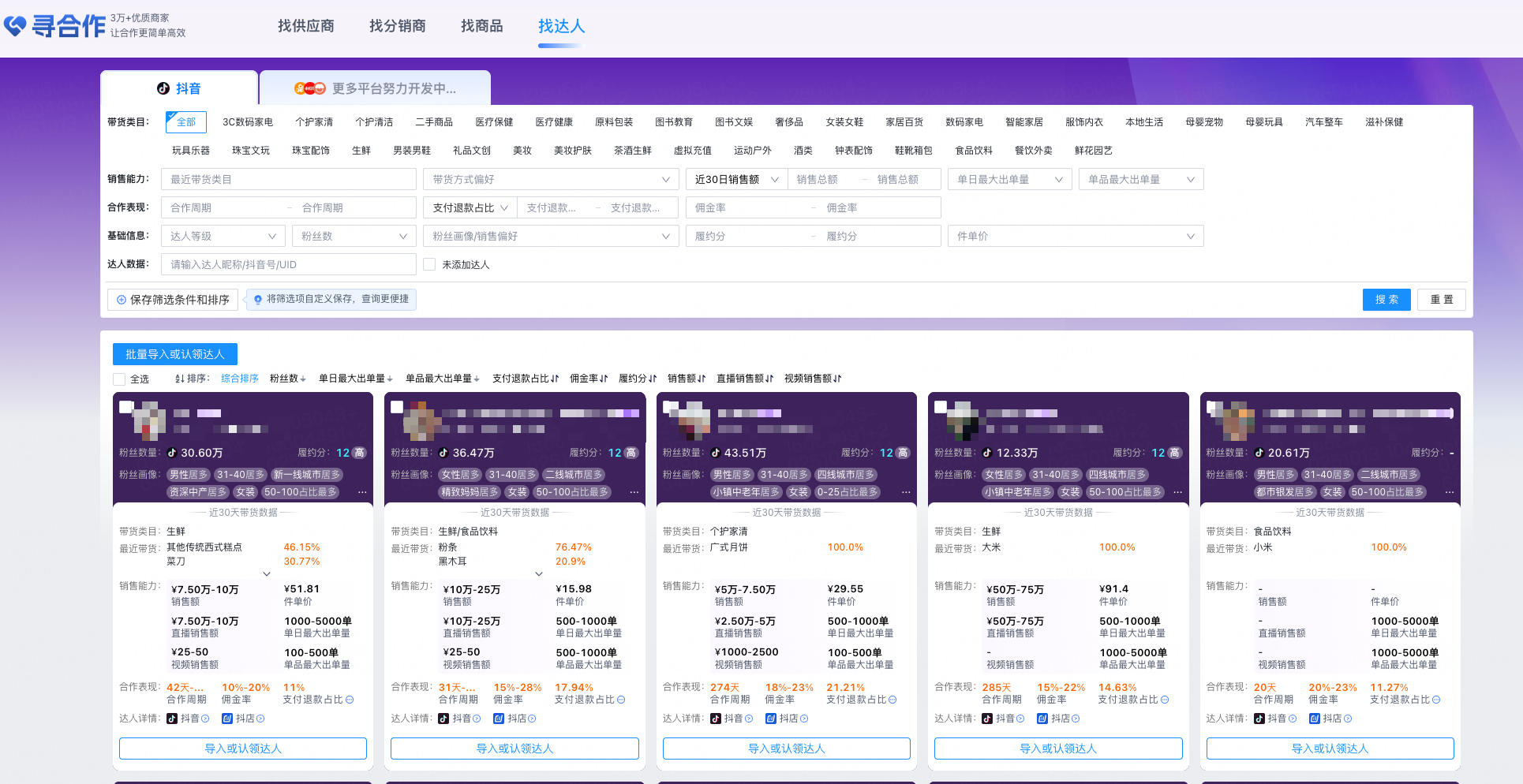 最近还上了新的功能,除了找分销商,还能直接找达人了。目前看应该是不会额外收费,可能也是为了增加粘性的一种办法。