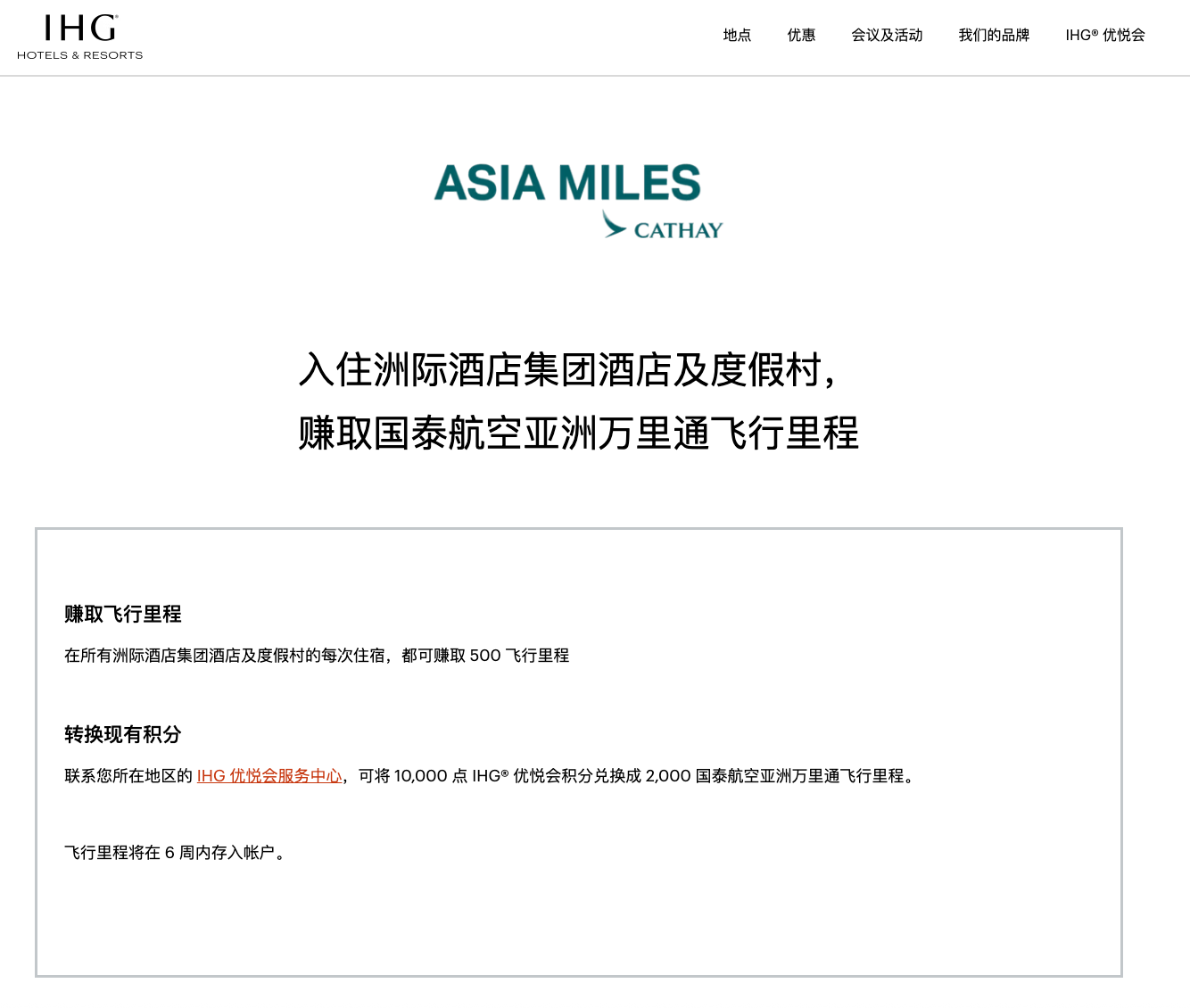 首先是,洲际并不支持按照消费金额的比例计亚洲万里通的里程,他是按照每次入住,单次入住无论住宿几晚、无论住宿的金额,每次可以累计500里程。